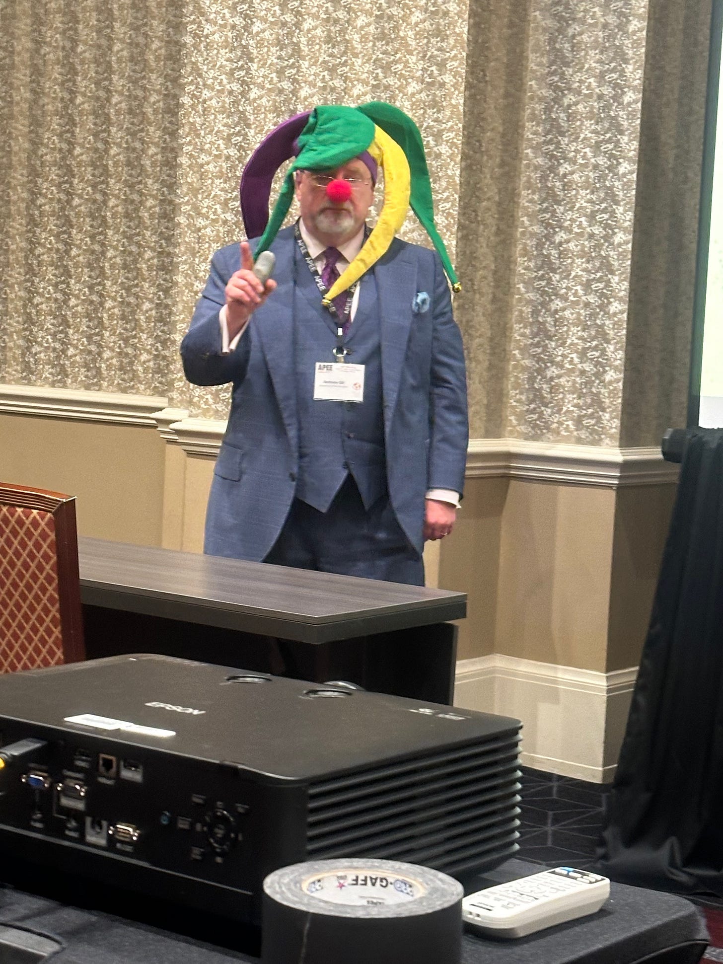 While those know Tony know that he often shows up wearing a cowboy hat, I got a great picture of him wearing a jester’s hat.